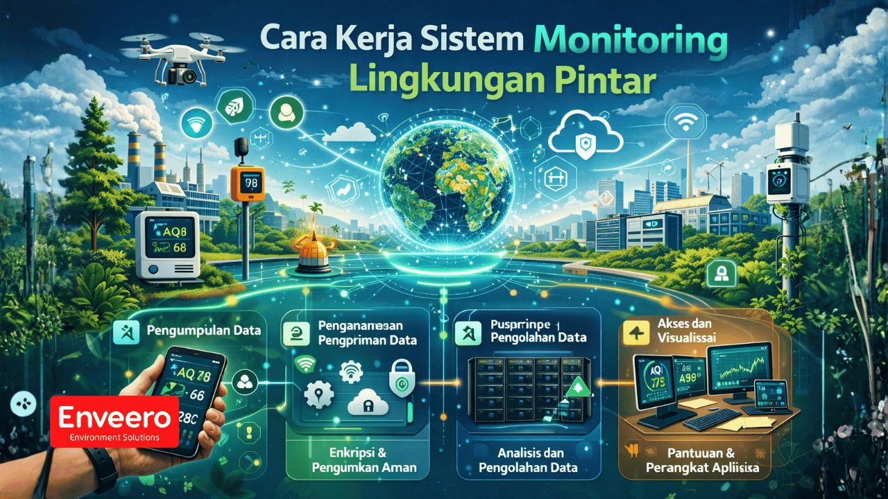 Cara kerja sistem monitoring pintar sebenarnya cukup jelas. Sensor membaca kondisi lapangan, data dikirim ke pusat pemantauan, platform mengolah informasi, lalu dashboard menampilkan hasilnya agar mudah dipahami. Dengan alur seperti ini, perusahaan dapat memantau lingkungan secara lebih cepat dan lebih rapi.