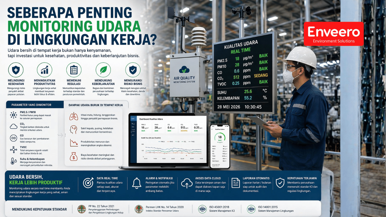 Monitoring udara kerja menjadi hal yang semakin penting di berbagai lingkungan operasional. Baik di area industri, gudang, laboratorium, fasilitas produksi, maupun area publik tertutup, kualitas udara sangat memengaruhi kenyamanan dan keselamatan. Karena itu, pemantauan udara tidak bisa lagi dianggap sebagai langkah tambahan. Kini, sistem monitoring justru menjadi bagian penting dari pengelolaan lingkungan kerja yang lebih modern dan terukur.